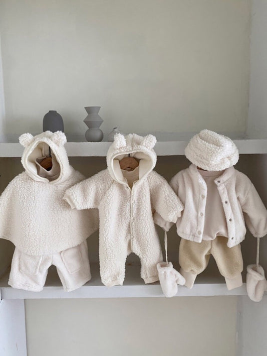 BleuRibbon Bear Ear Hooded Fleece Romper