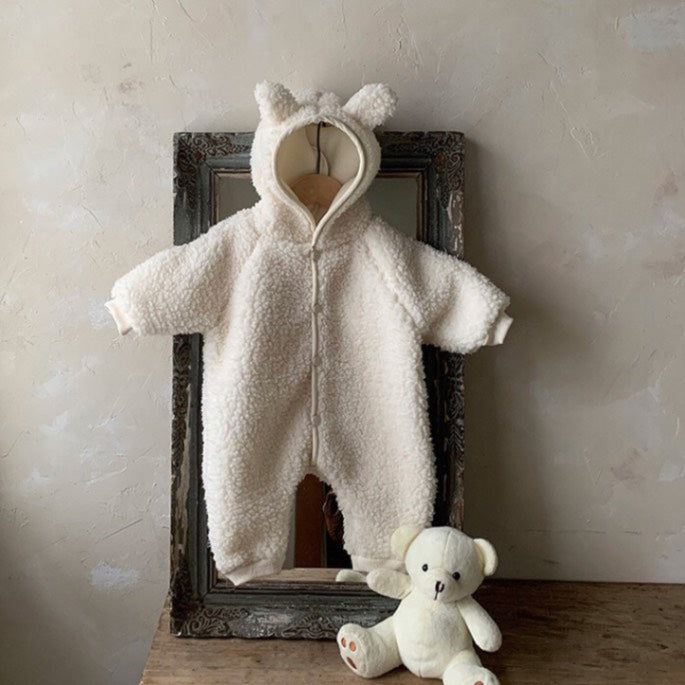 Zabalte své miminko do obláčkové měkkosti s overalem BleuRibbon Bear – pohodlný, oboustranný fleece s roztomilými medvědími oušky pro podzimní a zimní dobrodružství.