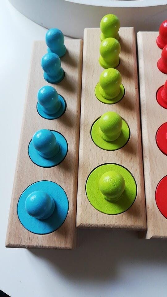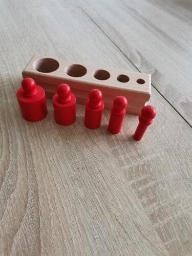 V očích batolete je svět směsicí tvarů a velikostí. Bleu Ribbon válcové bloky se zásuvkami jsou klasickým montessori materiálem navrženým tak, aby dětem pomohl pochopit tyto rozměry a naučil je rozlišovat mezi velkým a malým, vysokým a nízkým, tlustým a tenkým.