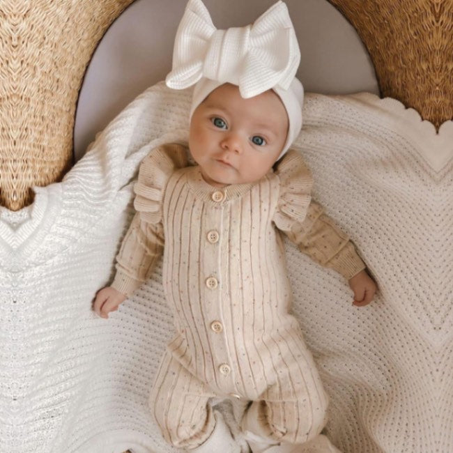This pullover jumpsuit features a knitted design with a classic style that’s both durable and chic. The meticulous stitching ensures longevity, while the snug fit keeps your baby cozy without restricting movement.