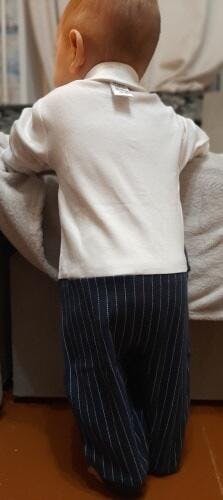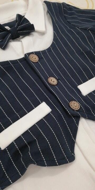 Prepáralo para la cámara sin lágrimas. El Mono Caballero Bleu Ribbon resuelve el mayor problema de la ropa formal para bebés: la incomodidad. Hemos reemplazado las telas rígidas y los cuellos que pican con 99% algodón orgánico premium que se siente tan suave como su pijama favorito.