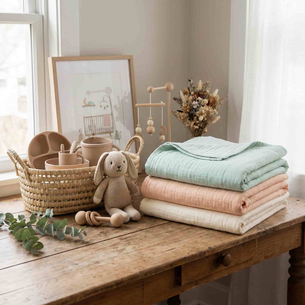 - 편안함부터 시작하세요: 매일의 포근함을 위한 부드러운 담요, 퀼트 또는 스와들 세트를 선택하세요.