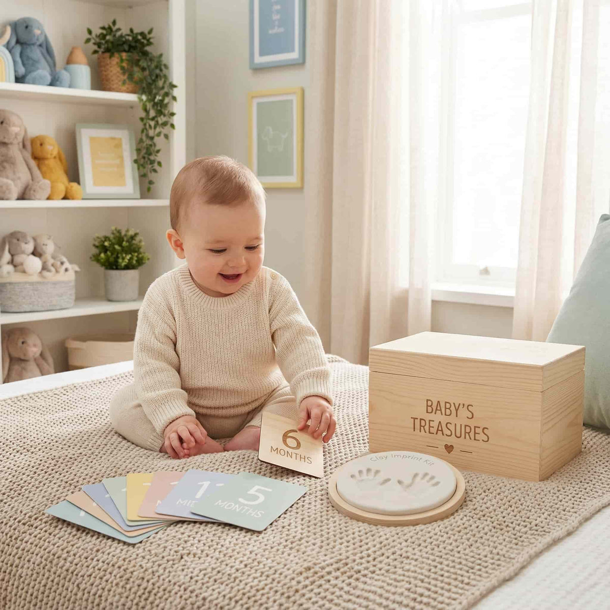 마일스톤 카드 세트로 시작하고, 점토 손도장 키트와 기념 메모리 박스를 추가하세요—완벽한 조합으로 첫 해의 이야기를 완성할 수 있습니다.