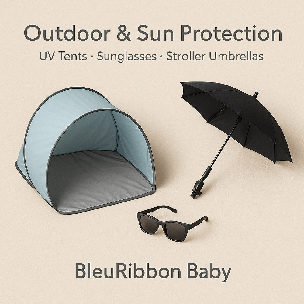 BleuRibbon Baby에서는 가족들이 안전하게 햇볕을 즐길 수 있도록 도와드립니다. 저희 야외 및 자외선 차단 컬렉션은 그늘, 통풍, 이동 중 편리함을 위해 설계된 UV 아기 텐트, 어린이 선글라스, 유모차 우산을 포함합니다.
