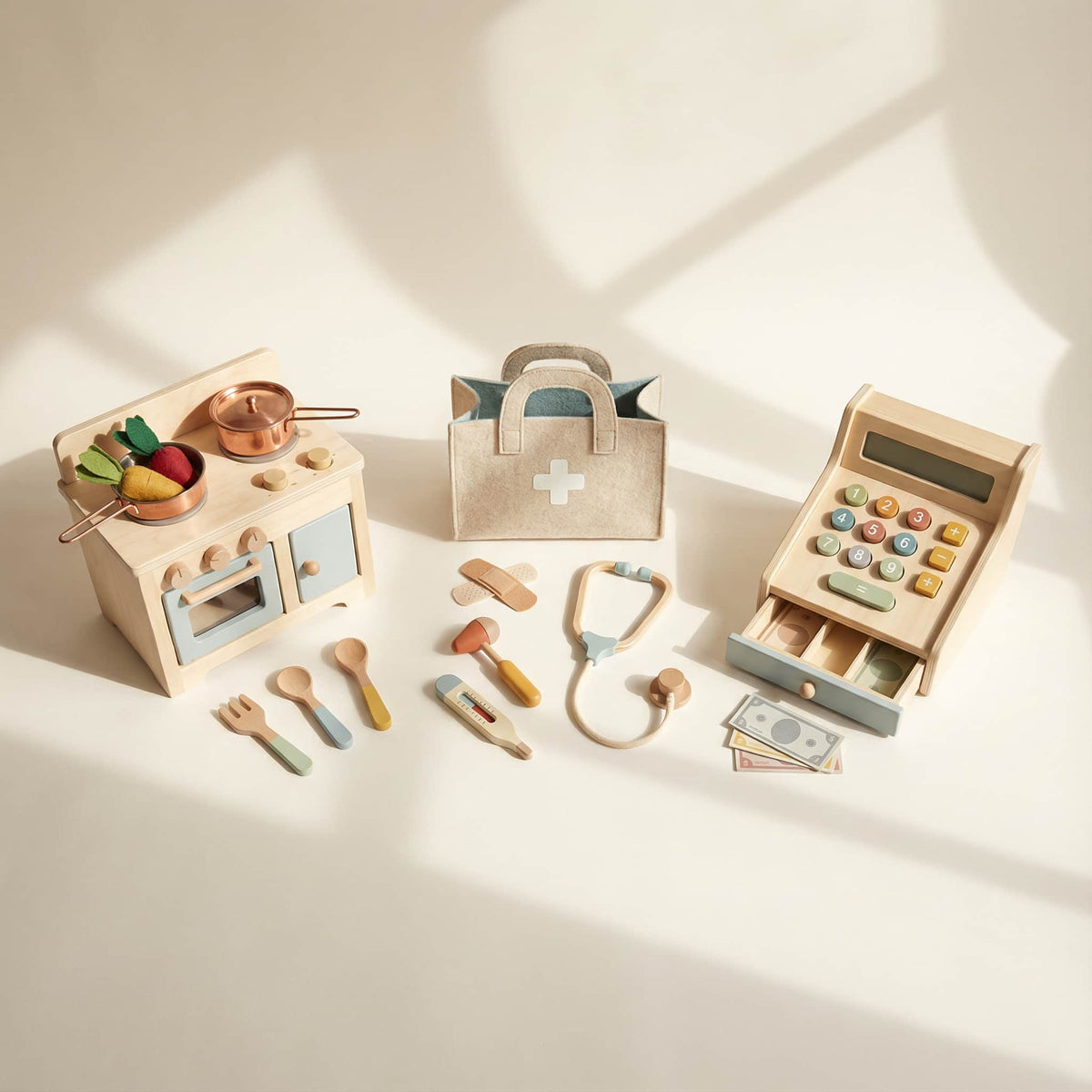 Pretend Play & Role Play – 주방, 의사 & 계산대 세트