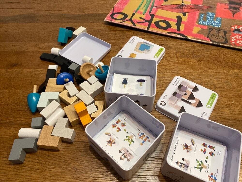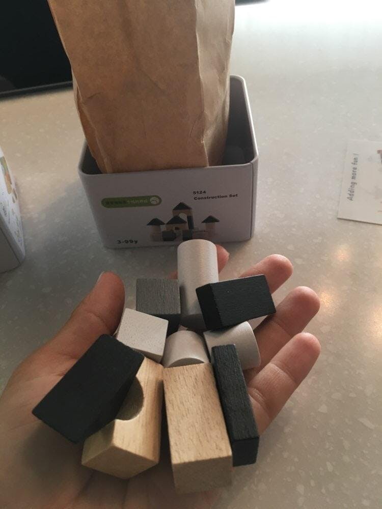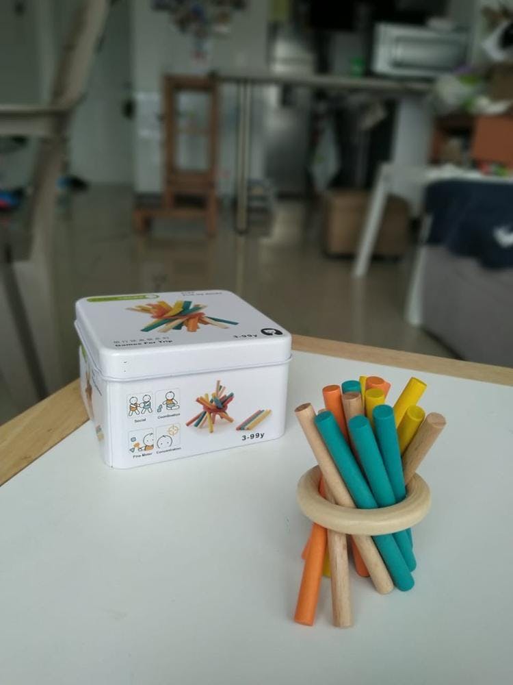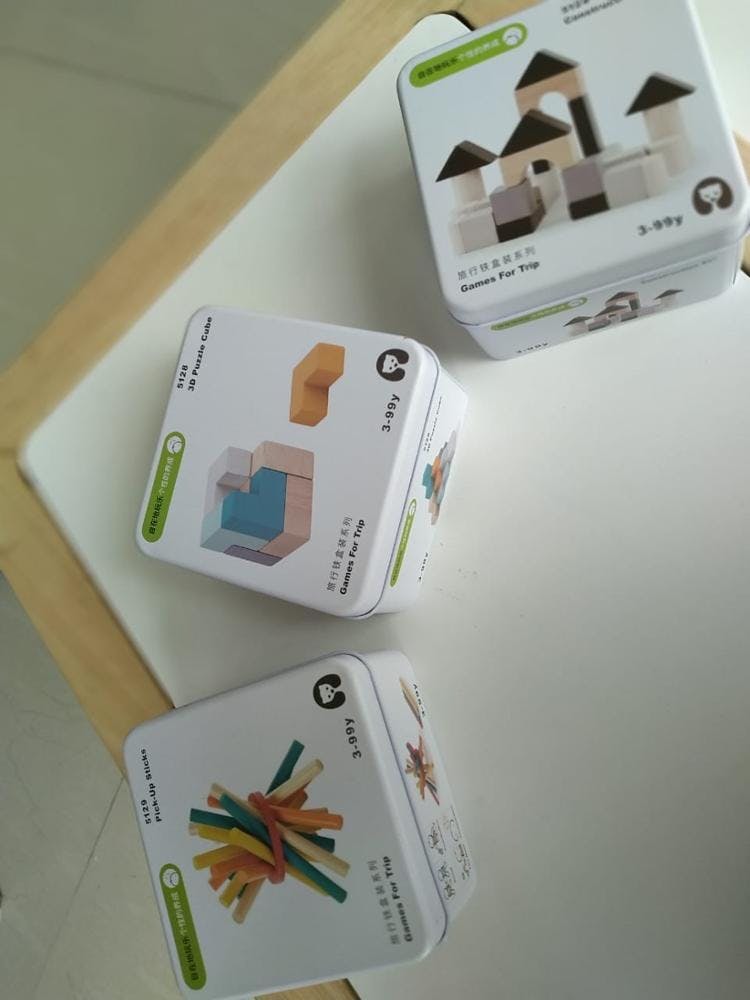 Lost-proof design. The durable iron box ensures the toy lasts for years. The wooden blocks are virtually indestructible during normal play. It’s a classic toy designed to be played with, stored away, and passed down to siblings.