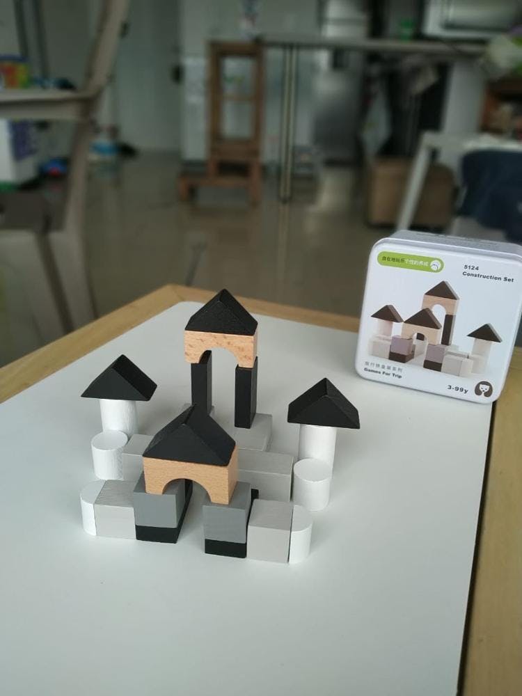 W środku pudełka w stylu vintage znajdziesz wysokiej jakości drewniane klocki, które zachęcają dziecko do dopasowywania wzorów, rozwiązywania zagadek lub swobodnego układania. Zostało zaprojektowane tak, aby idealnie mieścić się w torbie na pieluchy lub damskiej torebce, co czyni je nieocenionym podczas oczekiwania w restauracji czy jazdy samochodem.