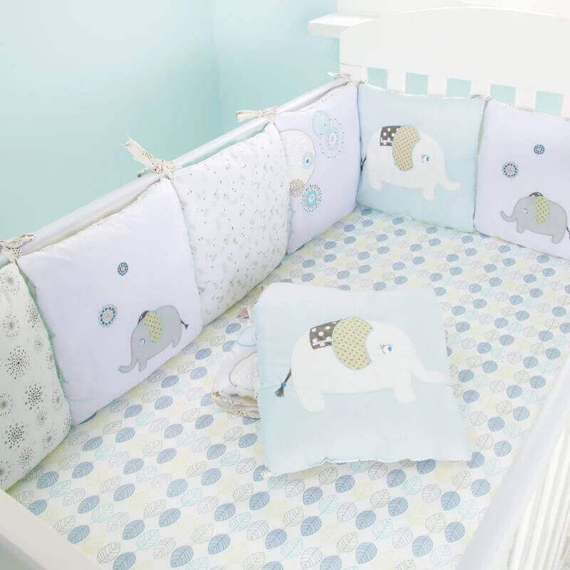 Introducing our "Cotton Elephant Crib Bumper Set" – a delightful blend of comfort, style, and eco-consciousness for your little one's nursery. Crafted with utmost care and precision, this bumper set from Bleu Ribbon Baby is designed to elevate your baby's sleep environment while keeping environmental impact to a minimum.