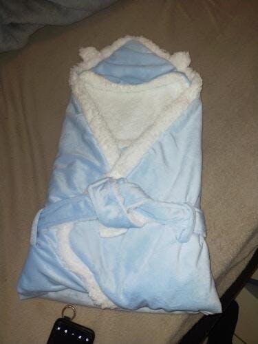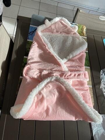 Built for warmth. This isn't just a thin sheet; it's a structured wrap. The thermal properties of the velvet fabric ensure consistent warmth. The velcro/fasteners (if applicable) are soft-touch to avoid scratching the baby, and the stitching is reinforced for safety.