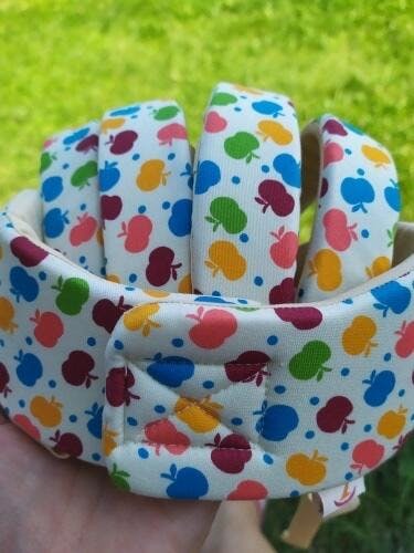 Washable hygiene. Babies sweat, especially when active. This helmet is hand washable (do not tumble dry) to keep it fresh and clean. The high-quality cotton retains its softness, and the IXPE foam maintains its protective density over time.